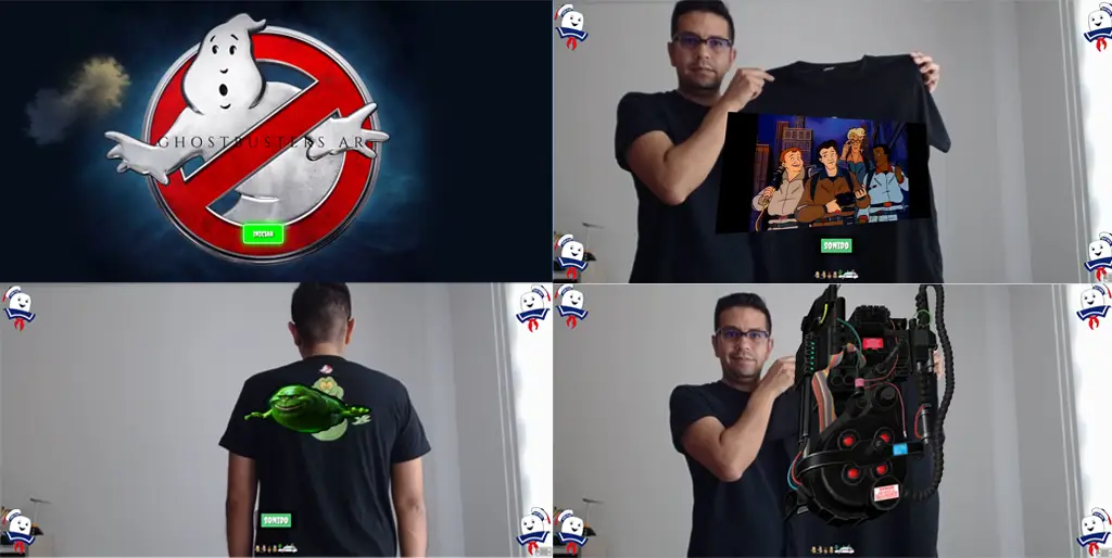 La idea es la siguiente: el usuario visita una pÔgina web desde su móvil, apunta la cÔmara a una camiseta con el logo de Ghostbusters en el pecho, ”y un video aparece sobre ella! Si le da la vuelta, el diseño de la espalda (Pegajoso -Slimer o ECTO-1) activa un modelo 3D o un segundo video.